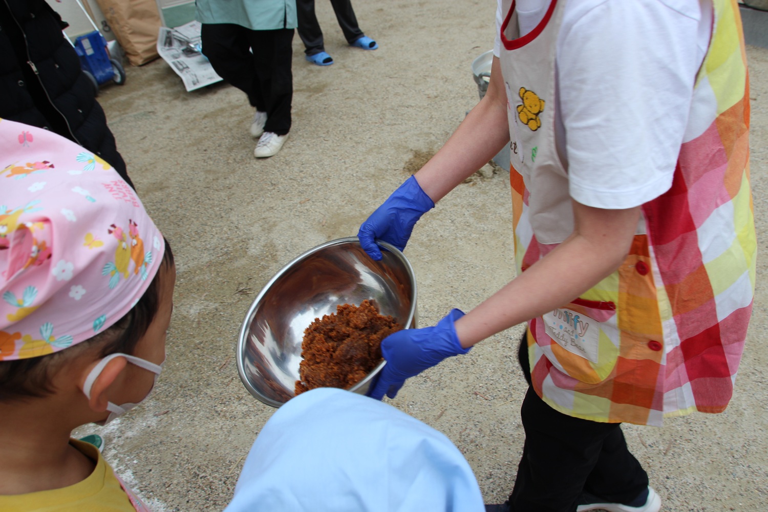 さつま汁で使った味噌は、ゆり組のこどもたちがきく組の時に仕込んでいた手作り味噌です。