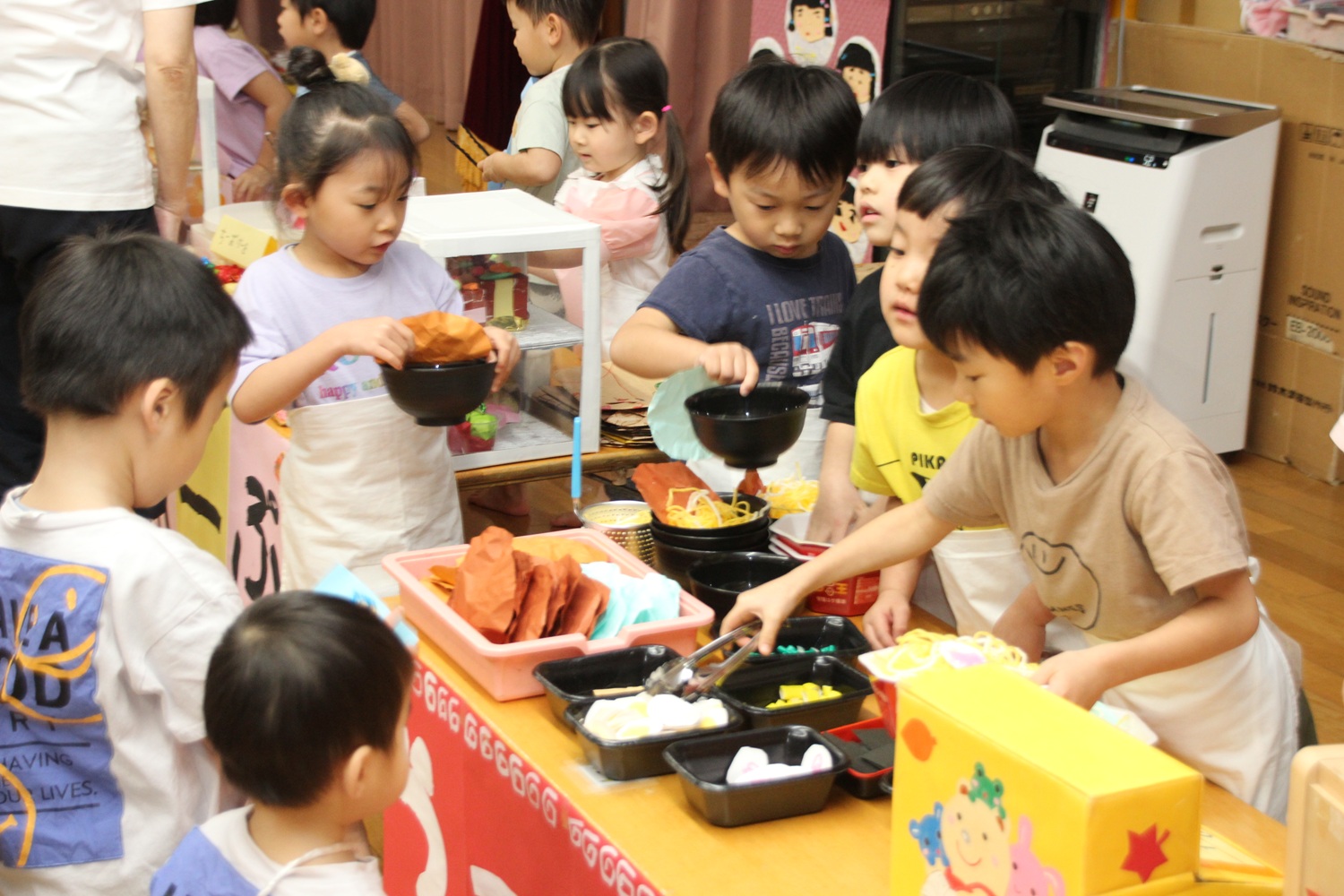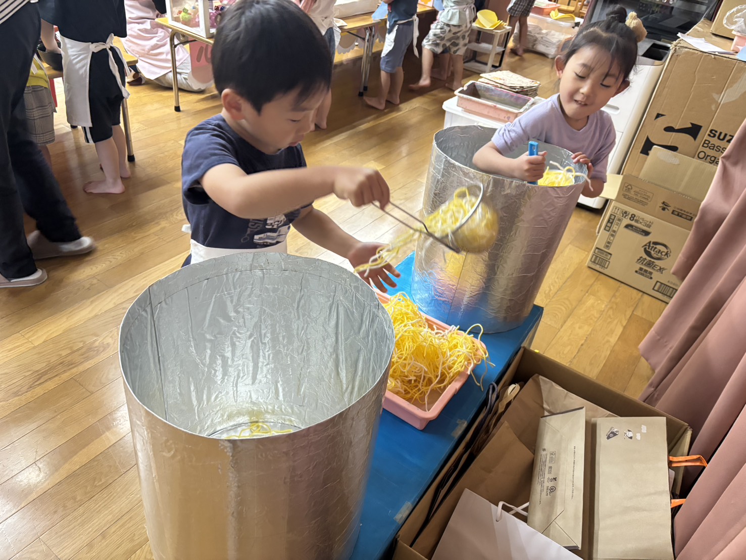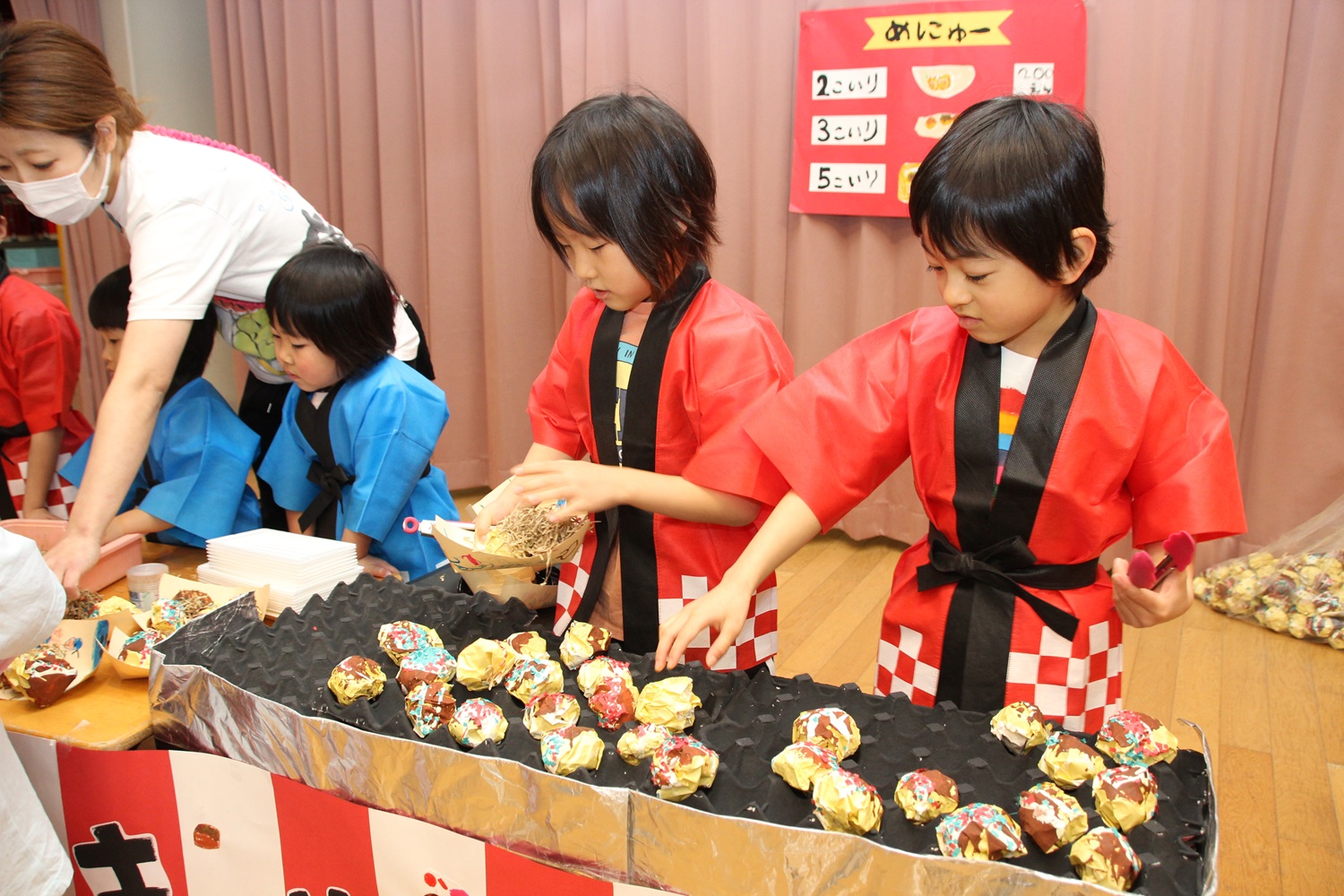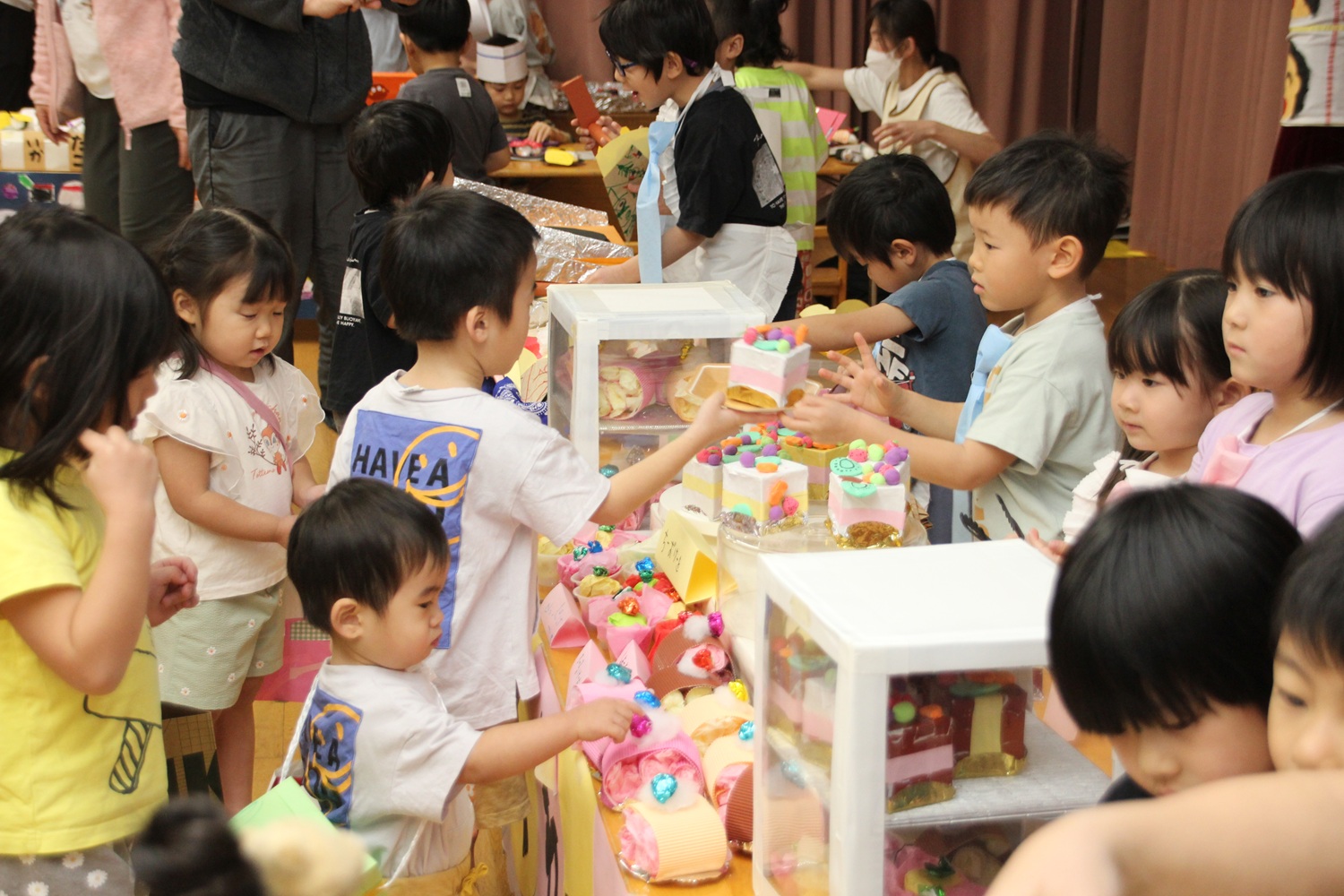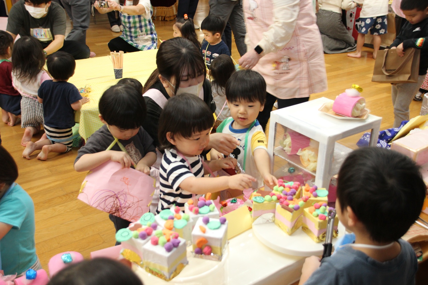この日まで、制作をするときは3・4・5歳の縦割り保育をして、年齢に合わせてできることをしながら、商品づくりをしてきました。