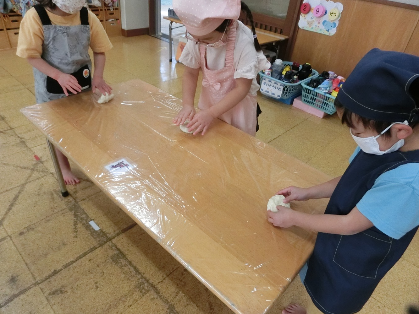 おやつにたべるので、これから先は給食の先生とバトンタッチ!