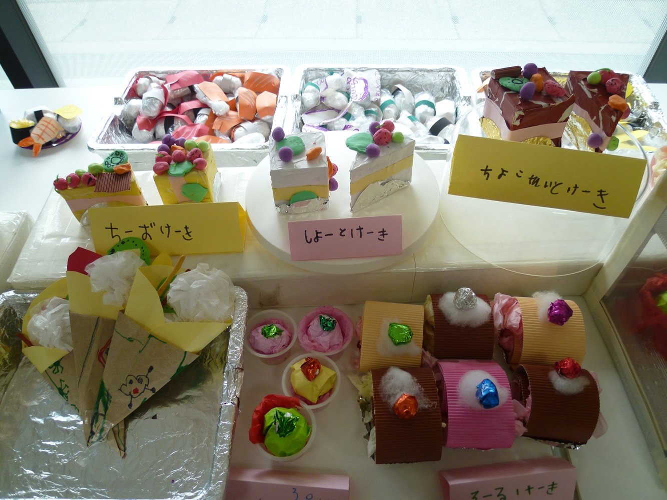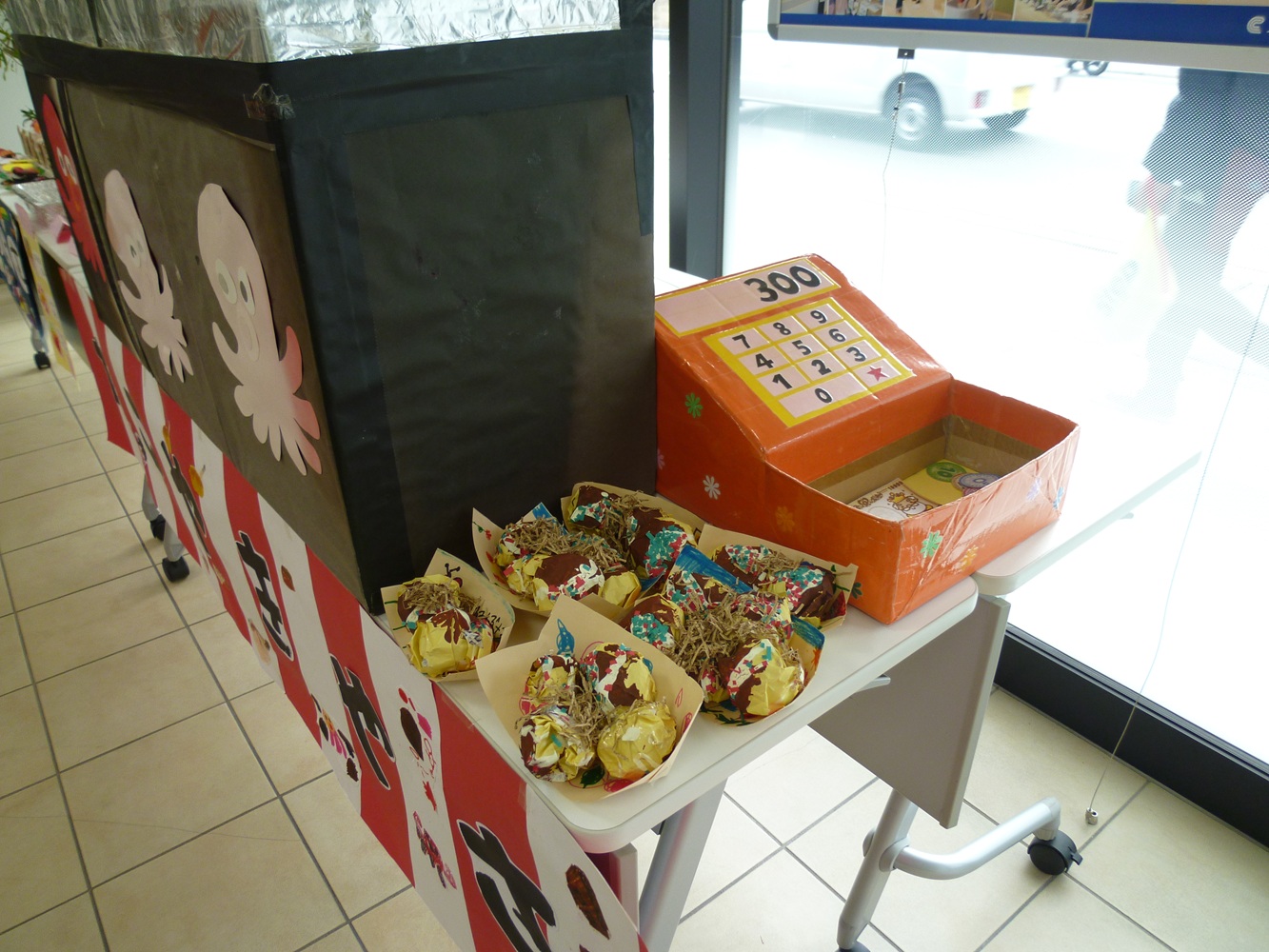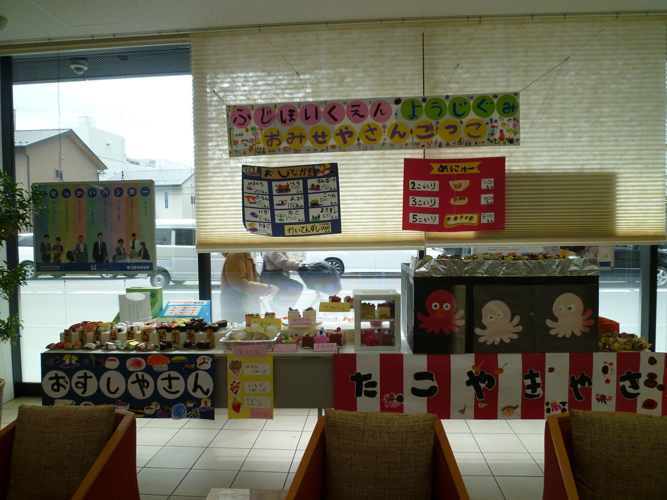 楽しかったおみせやさんごっこの作品が、一部ですが京都信用金庫梅津支店の方で、再登場しています。
