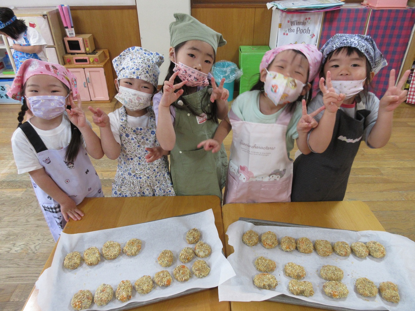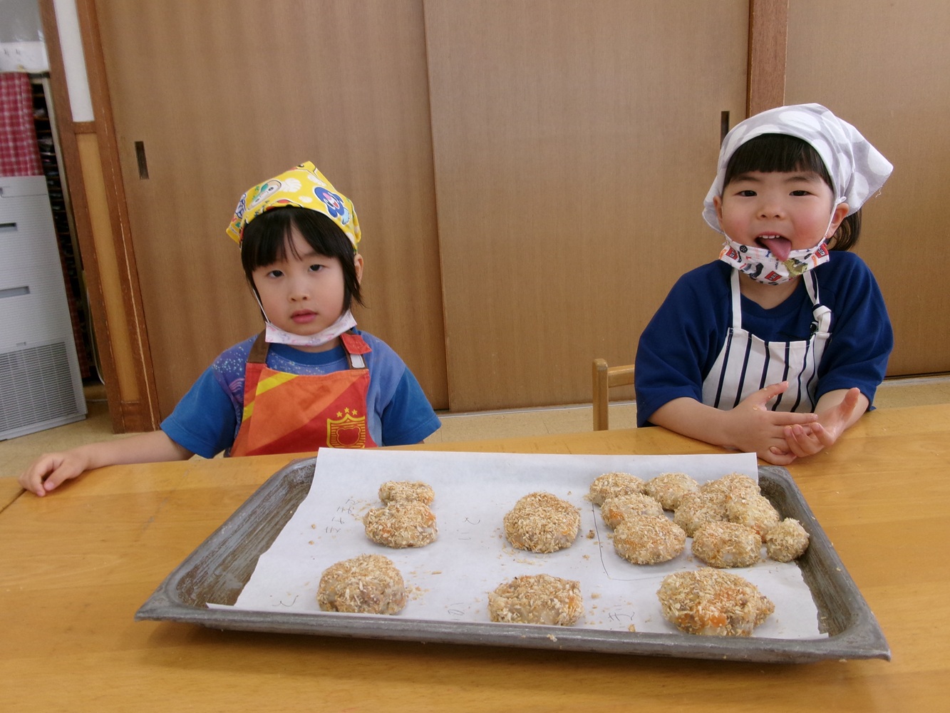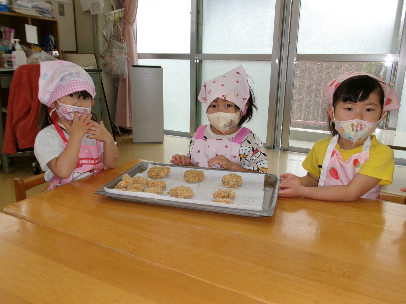 給食室で焼いてもらって給食の時に、おいしく頂きました。