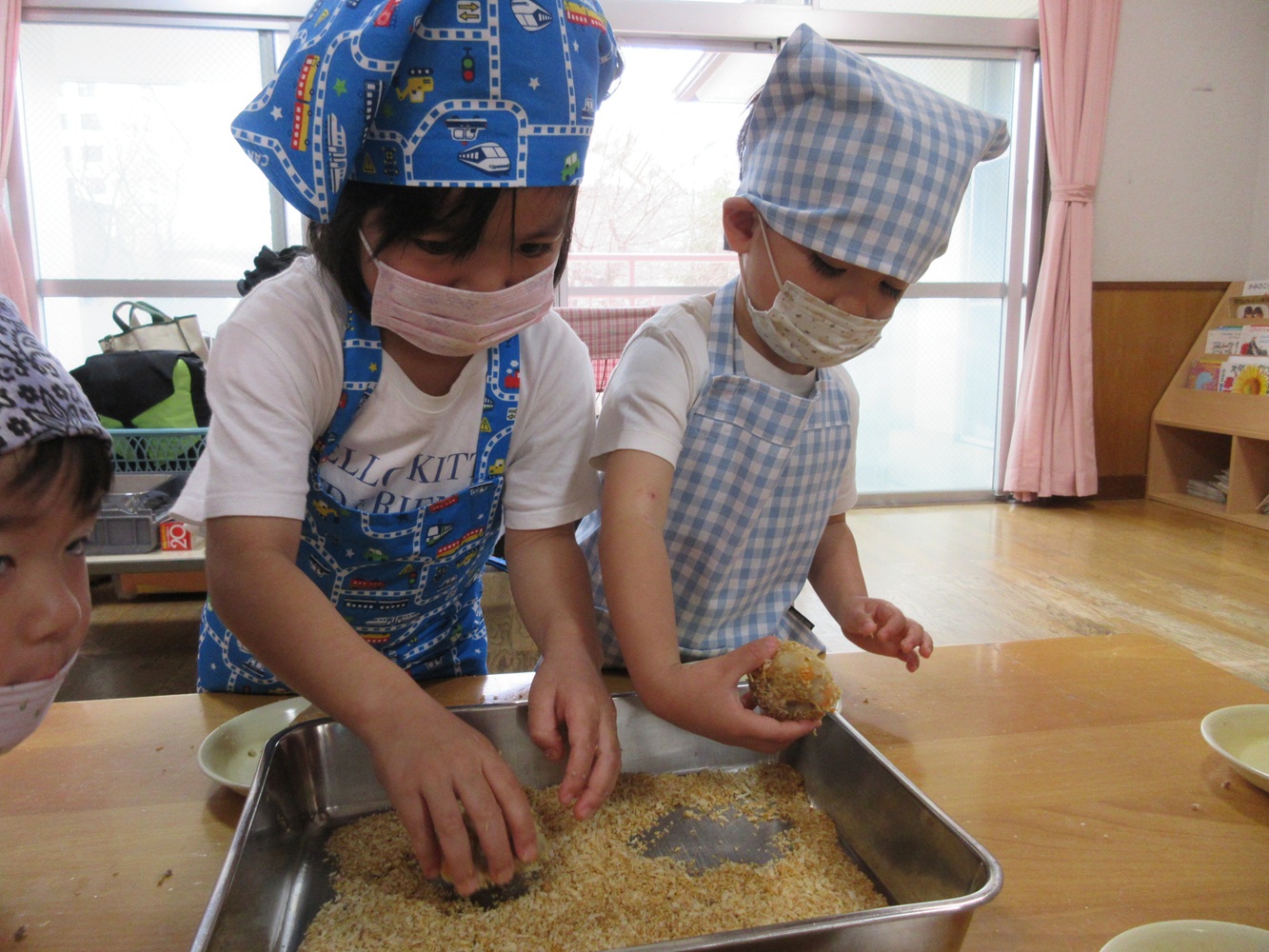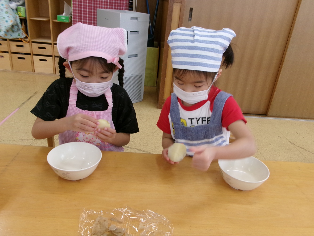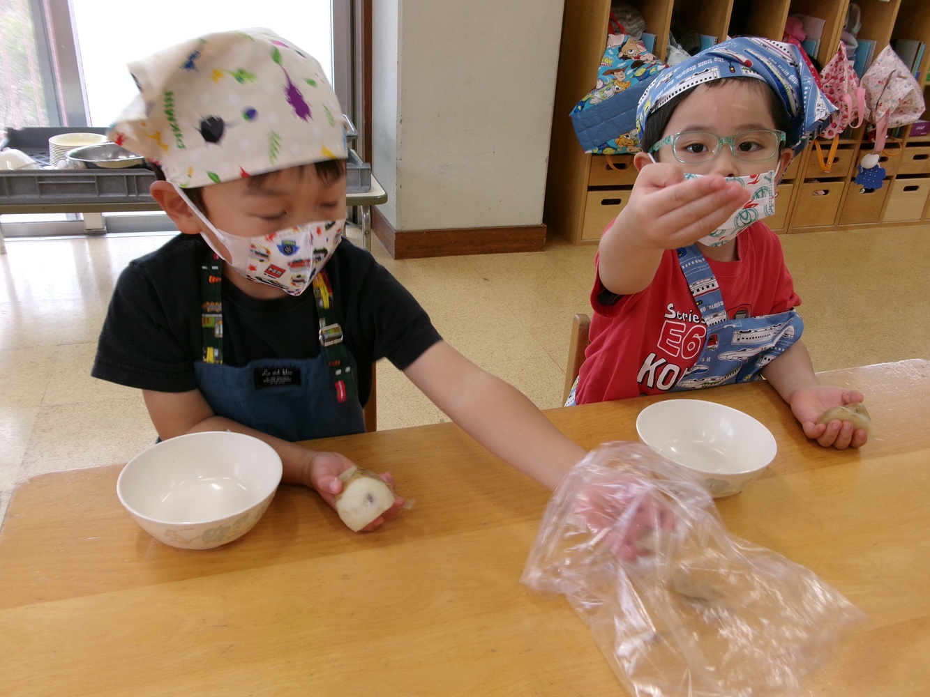 給食室で焼いてもらって給食の時に、おいしく頂きました。