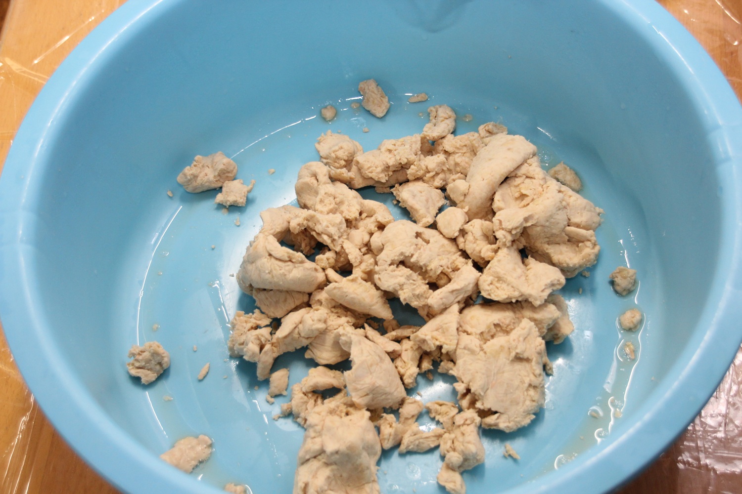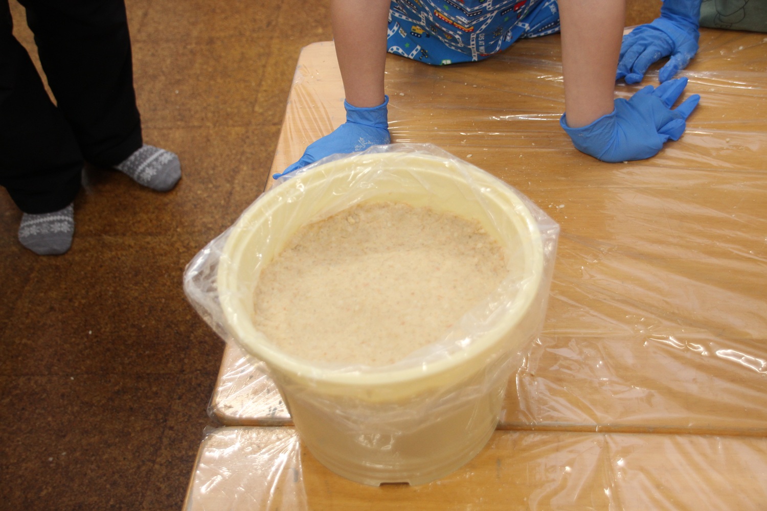 つぶした大豆と塩と麹を混ぜてあわせて・・・・