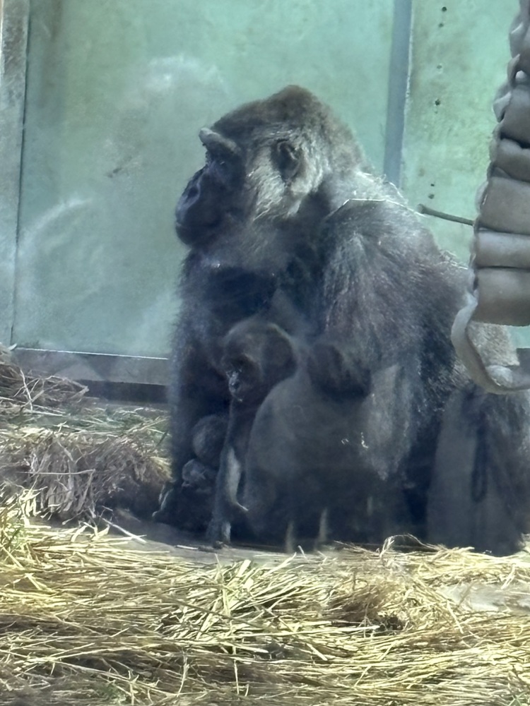 *ゴリラの赤ちゃんが生まれていて、お母さんゴリラが赤ちゃんを抱っこしていたんですが、こどもたちは見つけにくかったようですよ