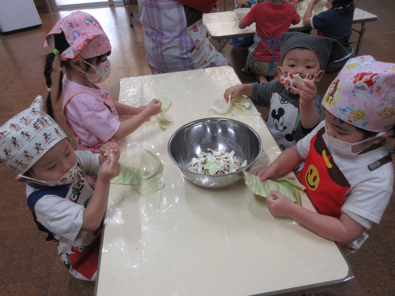 ★具材をみんなで手でちぎったよ。