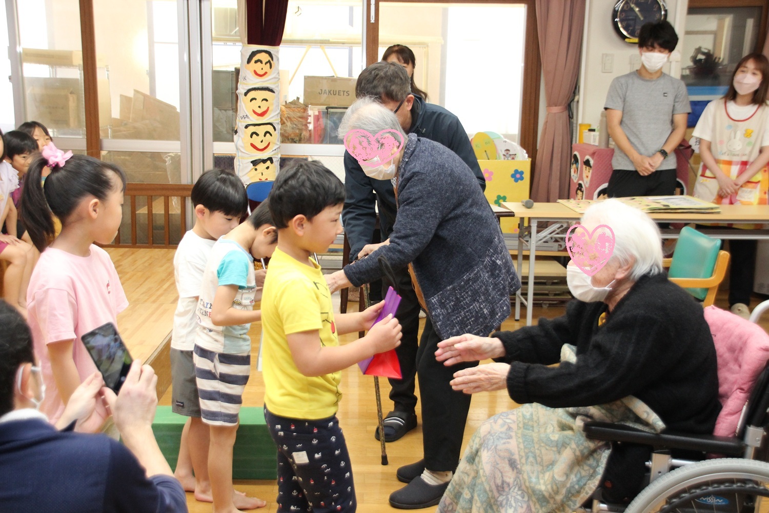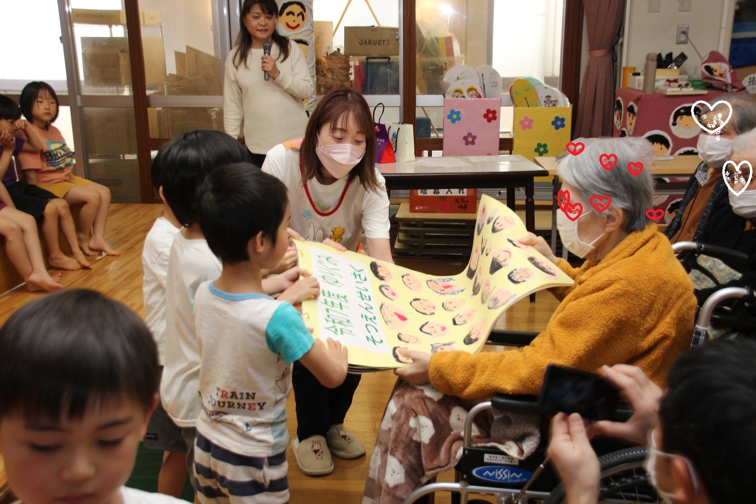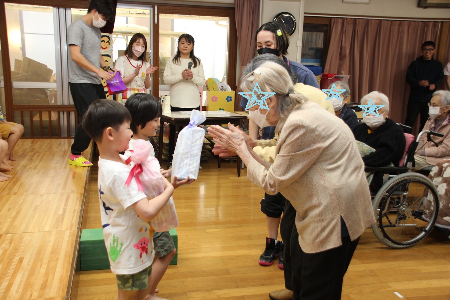たくさんのおとしよりや老人ホーム職員の方にも、卒園式を迎えることを喜んでいただけて、素敵なプレゼント交換会になりました。