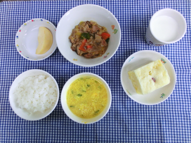 ごはん 八宝菜 りんご 粟米湯(スーミータン)