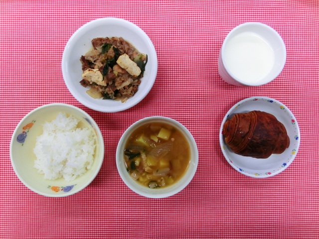ごはん すき焼き風煮付 さつま芋の味噌汁