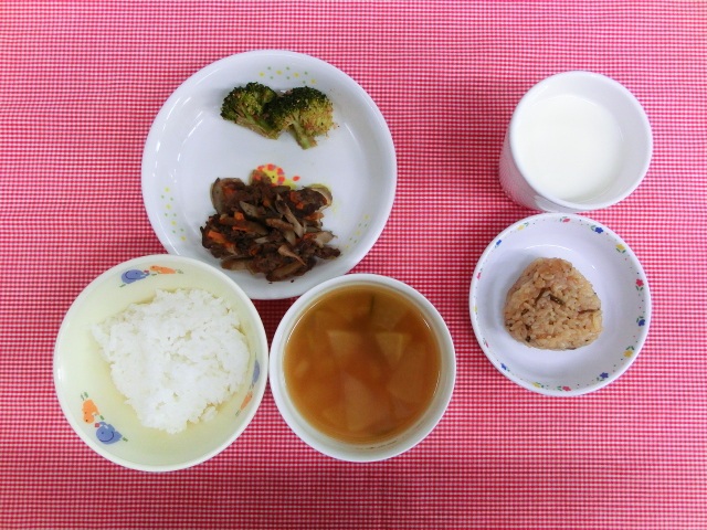 ごはん 五目きんぴら ブロッコリーのおかか和え 大根の味噌汁