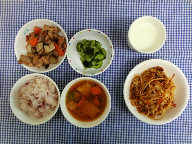 雑穀ごはん 筑前煮 若布の酢の物 もやしの味噌汁