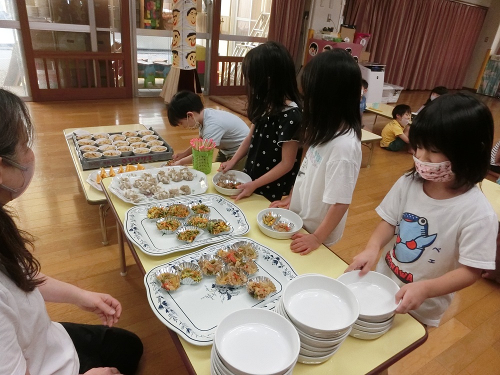 ※今日は幼児組誕生会で、バイキング形式の給食でした。