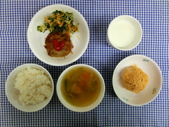 ごはん ハンバーグ 五品目の和風サラダ レタススープ