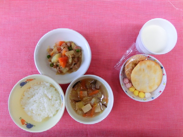 ごはん 鶏じゃが 白菜と高野豆腐の味噌汁